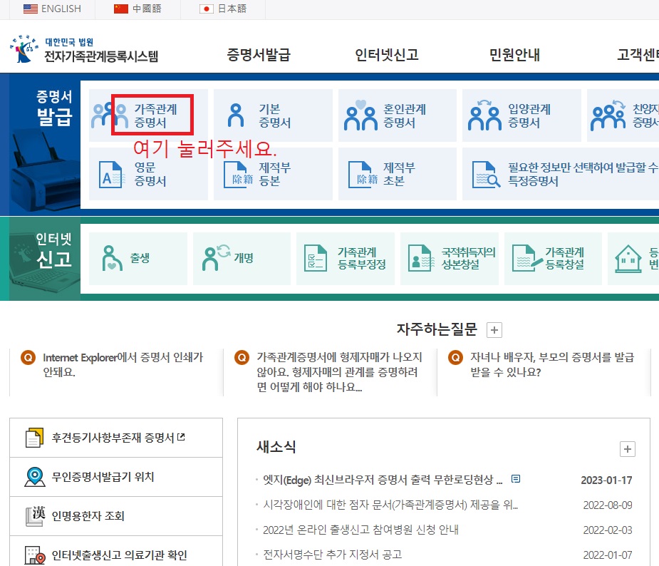 3. 가족관계증명서, 따라만 하면 바로 뽑을 수 있습니다.